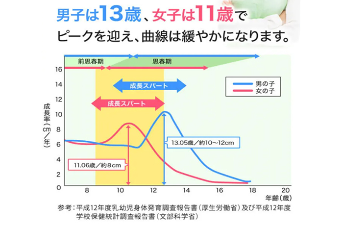 男子なら13歳、女子は11歳でピークに達するそうです。